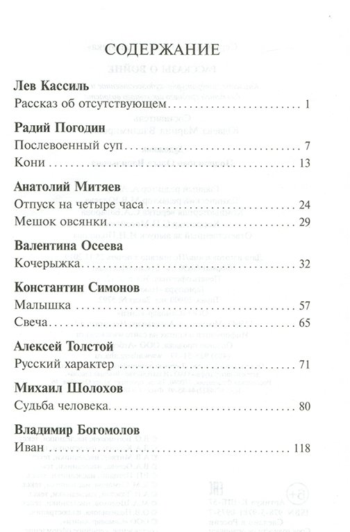 В сборник вошли произведения таких писателей, как Лев Кассиль, Радий Погодин, Анатолий Митяев, Валентина Осеева, Константин Симонов, Алексей Толстой, Михаил Шолохов, Владимир Богомолов.