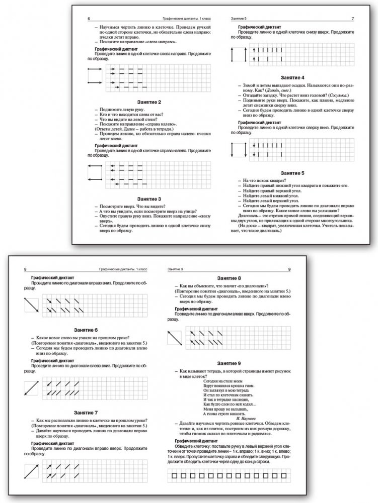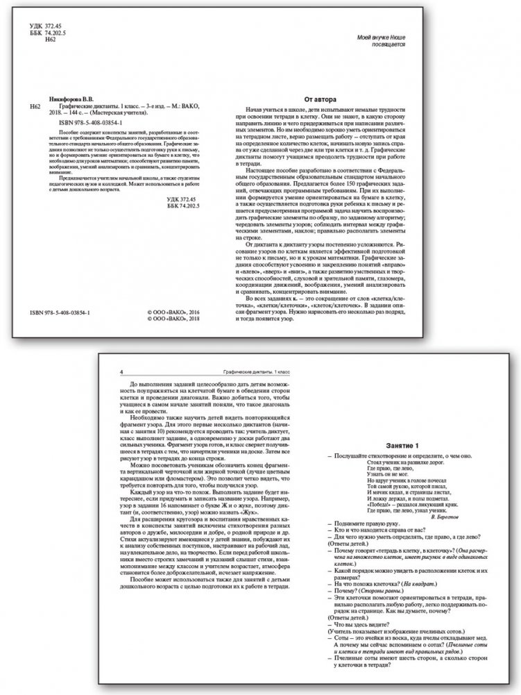 Пособие содержит конспекты занятий, разработаннные в соответствии с требованиями Федерального государственного образовательного стандарта начального общего образования. Графические задания позволяют не только осуществлять подготовку руки к письму, но и формировать умение ориентироваться на бумаге в клетку, что необходимо для уроков математики; способствуют развитию памяти, воображения, умений анализировать и сравнивать, концентрировать внимание. Предназначается учителям начальной школы, а также студентам педагогических вузов и колледжей. Может использоваться в работе с детьми дошкольного возраста.