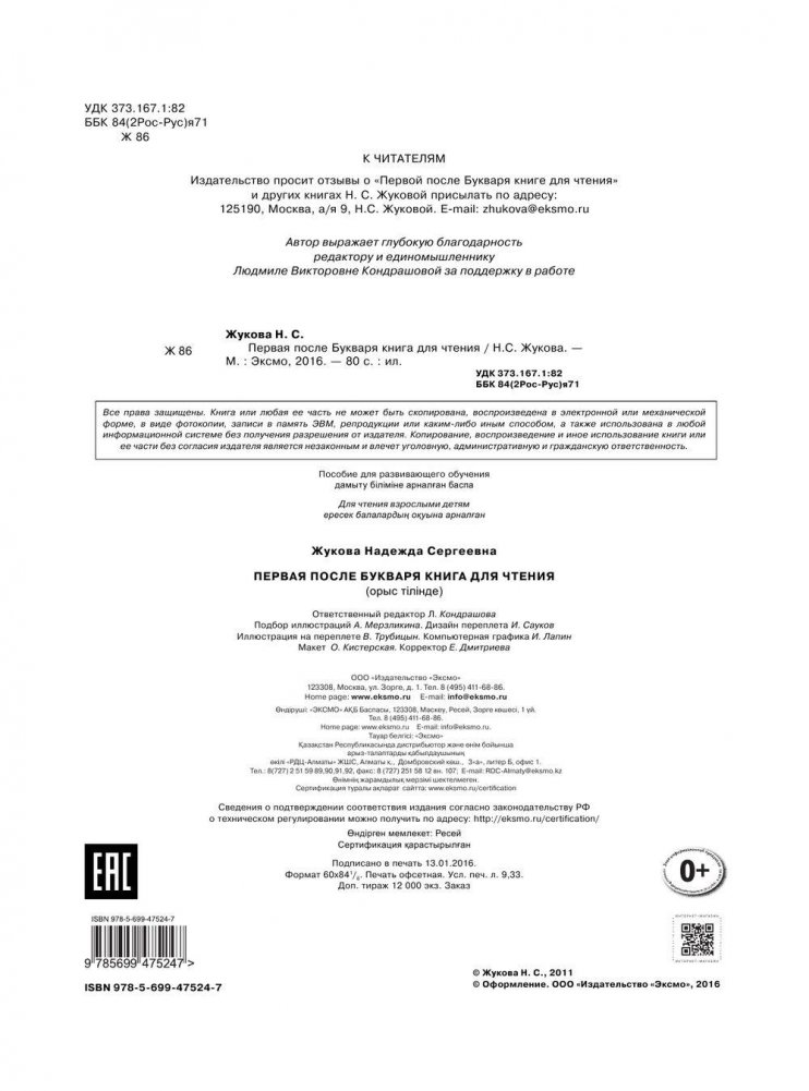 Известно, что современные дети не любят читать книги. Об этом пишут и много говорят в разных кругах. Однако причины такого печального явления пока никто не выявляет. По нашему мнению, одной из причин отсутствия у детей интереса к книге является то, что начинающий читать ребёнок плохо вооружён техникой прочтения текста. Что имеется в виду? Для того чтобы бегло и осмысленно прочитать объёмный текст, состоящий из длинных предложений в восемь и более слов, имеющий причастные, деепричастные обороты и слова сложной звуко-слоговой и грамматической структуры, необходим определённый технический навык. Этот навык, за редким исключением, не складывается сразу и вдруг. Подобно тому, как маленький пианист тренирует свои руки на постоянно усложняющемся музыкальном материале, так и начинающий читать ребёнок должен иметь для чтения нарастающий по сложности и содержанию лексико-грамматический материал. Этот материал должен обеспечить ему переход от простеньких букварных текстов к детской художественной литературе и, очень желательно, к доступной познавательной книге. Недостающее звено между Букварём и детской книгой восполнит «Первая после Букваря книга для чтения». Однако основная задача нашего пособия состоит в том, чтобы начать формировать у детей любознательность, вызвать у ребёнка стремление приобретать новые знания, развивать пытливый ум и усидчивость.