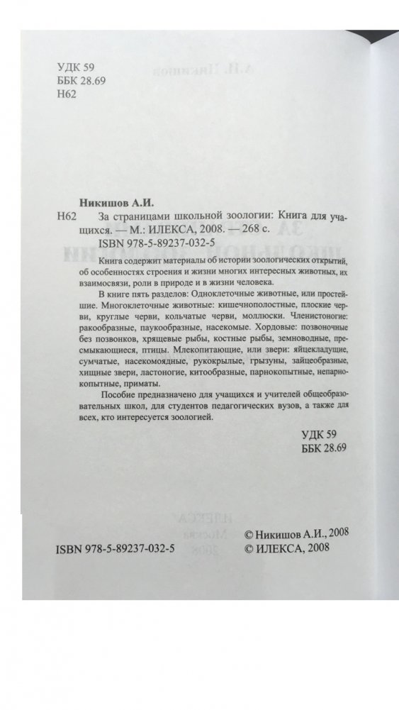 Мир животных, изучаемый зоологией и некоторыми другими науками, отличается огромным разнообразием. Накопленные о нем знания не может вместить ни одна книга, тем более школьный учебник. На уроках биологии можно познакомиться лишь с отдельными представителями основных типов и классов животных, с признаками их строения и жизнедеятельности. Эта книга написана в дополнение к учебнику «Биология. Животные» (авторы А.И. Никишов и И.Х. Шарова). В нее включены сведения из истории зоологических открытий, их значении в развитии биологии, об особенностях строения и жизни многих интересных животных, их взаимосвязи, роли в природе и в жизни человека. В книге пять разделов: Одноклеточные животные, или простейшие. Многоклеточные животные: кишечнополостные, плоские черви, круглые черви, кольчатые черви, моллюски. Членистоногие: ракообразные, паукообразные, насекомые. Хордовые: позвоночные без позвонков, хрящевые рыбы, костные рыбы, земноводные, пресмыкающиеся, птицы. Млекопитающие, или звери: яйцекладущие, сумчатые, насекомоядные, рукокрылые, грызуны, зайцеобразные, хищные звери, ластоногие, китообразные, парнокопытные, непарнокопытные, приматы. Материал изложен просто и увлекательно, легко читается и запоминается. Книга предназначена для внеклассного чтения. Она значительно расширит представления учащихся о многообразии животных, сделает более интересным и понятным зоологический материал, изучаемый в школе. Она может быть использована для подготовки докладов к урокам и внеклассным занятиям по биологии, подбора сведений для дополнения ответов одноклассников по разным вопросам и для активного участия на повторительных и обобщающих уроках по зоологии. Книга предназначена для учащихся и учителей общеобразовательных школ, для студентов педагогических ВУЗов, а также для всех, кто интересуется окружающим нас животным миром.