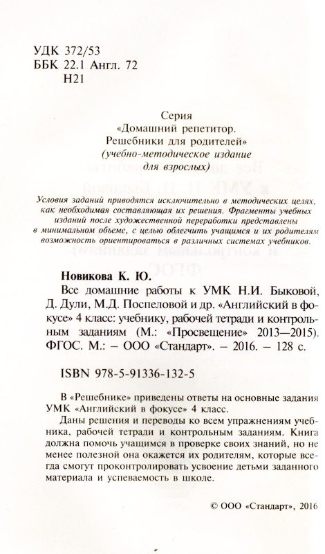 Все домашние работы к учебнику и рабочей тетради УМК Н.И. Быковой, М.Д. Поспеловой "Английский в фокусе". "Spotight". 4-й класс. ФГОС