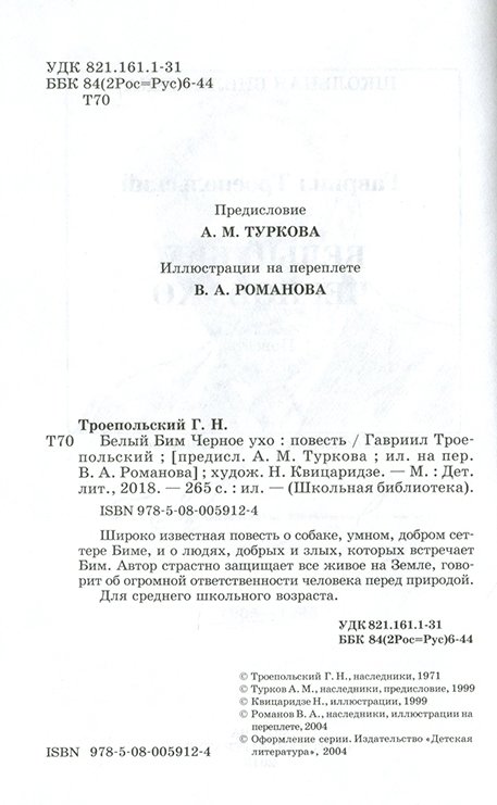 Серия рекомендована Управлением общего среднего образования Министерства общего и профессионального образования РФ. Широко известная повесть о собаке, умном, добром сеттере Биме, и о людях - добрых и злых, - которых встречает Бим. Автор страстно защищает все живое на Земле, говорит об огромной ответственности человека перед природой. Для среднего школьного возраста.