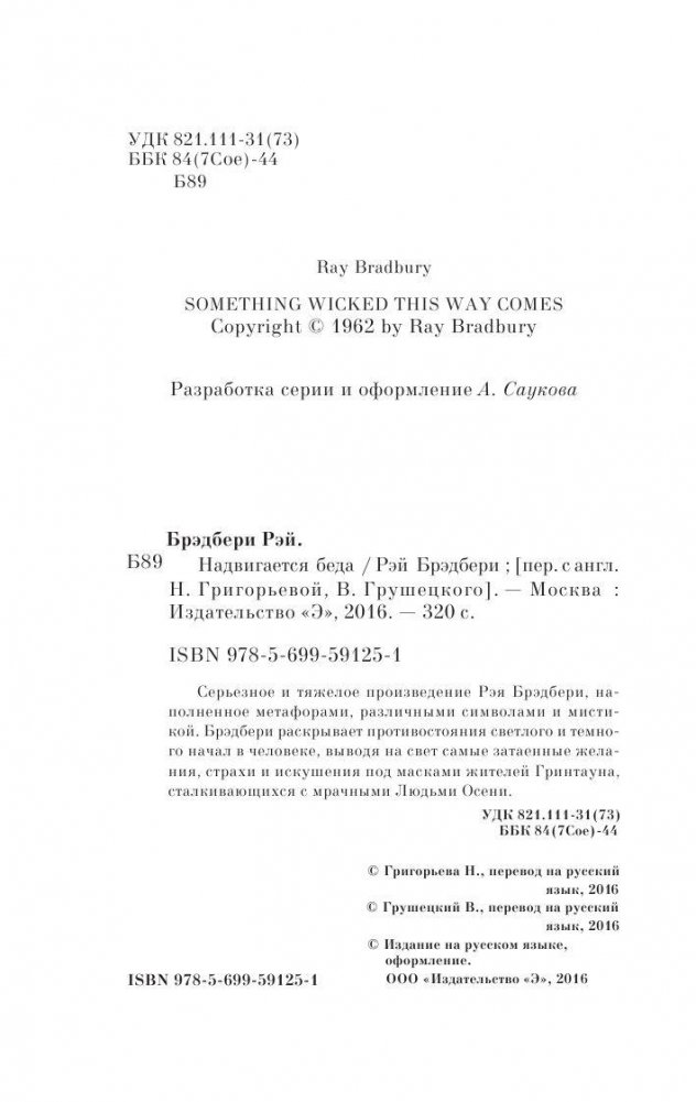 Серьезное и тяжелое произведение Рэя Брэдбери, наполненное метафорами, различными символами и мистикой. Брэдбери раскрывает противостояния светлого и темного начал в человеке, выводя на свет самые затаенные желания, страхи и искушения под масками жителей Гринтауна, сталкивающихся с мрачными Людьми Осени.