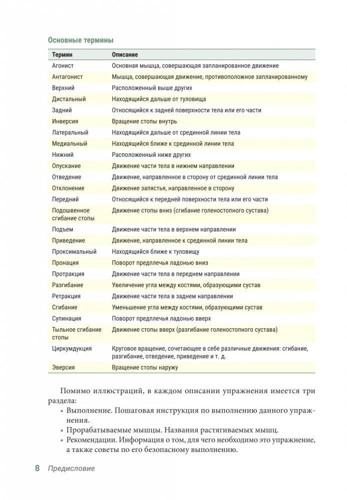 Каждое упражнение сопровождается пошаговыми инструкциями по выполнению, перечнем растягиваемых мышц и примечаниями, где в деталях описываются все преимущества данного упражнения, указания по соблюдению мер предосторожности и варианты среднего и повышенного уровней сложности. Благодаря цветным иллюстрациям вы сможете понять, как различные движения изменяют нагрузку на мышцы, и сделать свои тренировки максимально полезными и безопасными.