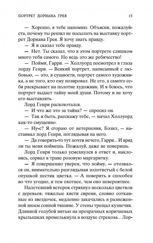 В настоящее издание вошли знаменитый роман «Портрет Дориана Грея» — самая успешная и самая скандальная из всех созданных Уайльдом книг, — а также малая проза писателя: остроумный комедийный детектив «Преступление лорда Артура Сэвила», пародийно-готическая повесть «Кентервильское привидение» и новеллистические этюды «Сфинкс без загадки» и «Натурщик-миллионер».