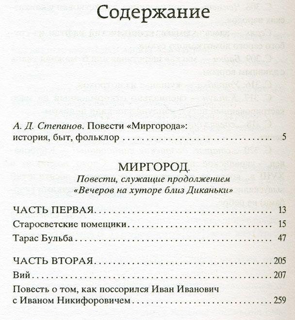 В настоящем издании печатаются повести Н.В. Гоголя, составившие его сборник «Миргород»: «Старосветские помещики», «Тарас Бульба», «Вий», «Повесть о том, как поссорился Иван Иванович с Иваном Никифоровичем». Как указал сам автор, сборник «Миргород» (1835) стал органичным продолжением «Вечеров на хуторе близ Диканьки». «Нет, прошло времечко: не увидать больше запорожцев!» — восклицал один из рассказчиков еще в «Вечерах...». Эта мысль теперь становится главной: сопоставление легендарного прошлого и лишенного героизма настоящего — основа композиции «Миргорода». Мужество, непреклонная воля, недюжинная сила и любовь к отечеству – черты истинных героев в «Тарасе Бульбе».