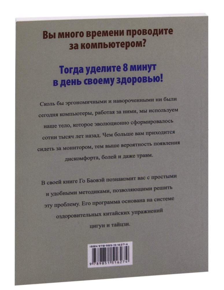 Го Баовэй в соавторстве с консультантом по компьютерам Томом Виниата на основании обширных знаний о традициях цигун знакомит с простыми и удобными методиками лечения болезней, вызванных использованием компьютеров, и предупреждения сопутствующих проблем в будущем.