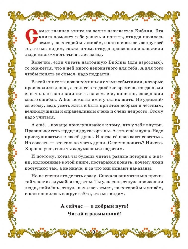 В данном издании самая популярная книга на Земле - "Библия" - адаптирована для детей. В ней освещены основные факты древней истории, доступно и в художественной форме пересказана легенда о сотворении мира, появлении Адама и Евы, изложена жизнь Иисуса Христа и Богородицы. Замечательные рисунки дают возможность ребенку увидеть явление ангелов, крещение Иисуса Христа, укрощение бури и другое.