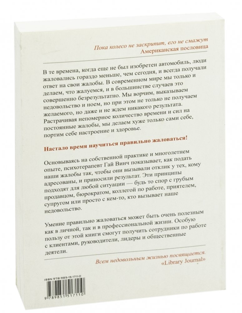 Рассматриваются проблемы, связанные с выражением жалоб и недовольства, которые становятся неотъемлемой частью повседневной жизни. Для широкого круга читателей.