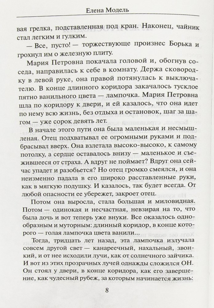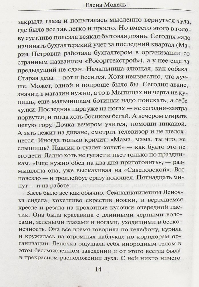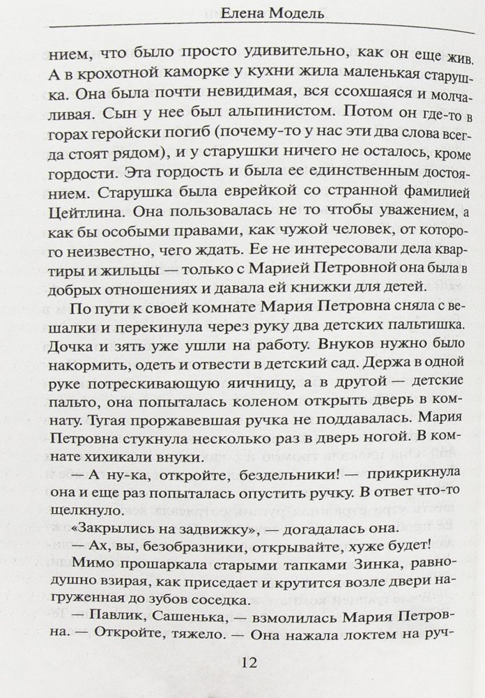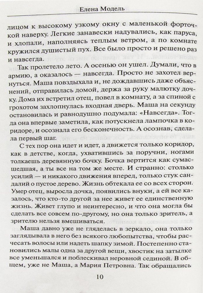 "Проза Модель "слегка горчит" - так бывает, когда взгляд автора, исполненный любви к своим героям, в то же время точен и беспощаден. В рассказах, вошедших в сборник "Благодетельница", полотно жизни многослойно и прихотливо, юмор балансирует на грани сарказма, а динамичный сюжет венчают драматические и подчас неожиданные развязки. Классические истории "маленького человека" обретают в прозе Елены Модель новое дыхание, а блестящая психологическая разработка поступков и характеров героев не оставит равнодушным даже самого взыскательного читателя".