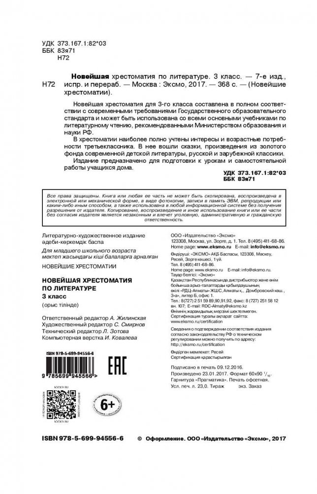 Новейшая хрестоматия для 3 класса составлена в полном соответствии с современными требованиями Государственного образовательного стандарта и может быть использована со всеми основными учебниками по литературному чтению, рекомендованным Министерством образования и науки РФ. В хрестоматии наиболее полно учтены интересы и возрастные потребности третьеклассника. В нее вошли сказки, произведения из золотого фонда современной детской литературы, русской и зарубежной классики. Издание предназначено для подготовки к урокам и самостоятельной работы учащихся дома.