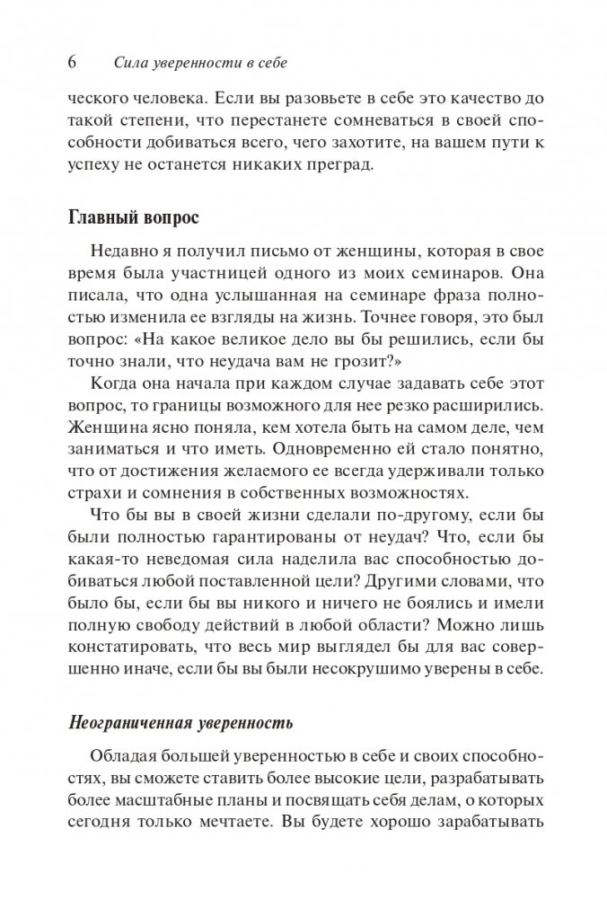 Почему одни люди добиваются успеха, а другие нет? Все зависит от уверенности в себе! Из этой практичной книги, которую автор написал, основываясь на опыте своей работы более чем с пятью миллионами руководителей разного уровня, предпринимателей, продавцов и других амбициозных людей в шестидесяти странах мира, вы узнаете, как выработать непоколебимую уверенность в себе. Используя советы Брайана Трейси, вы сможете повысить самооценку, что позволит вам покинуть комфортную зону и пойти на риск, даже когда нет никаких гарантий. Рекомендации Брайана помогут вам шаг за шагом строить фундамент веры в себя.