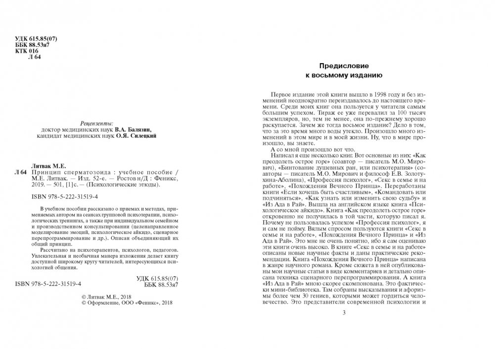 В учебном пособии рассказано о приемах и методах, применяемых автором на сеансах групповой психотерапии, психологических тренингах, а также при индивидуальном семейном и производственном консультировании (целенаправленное моделирование эмоций, психологическое айкидо, сценарное перепрограммирование и др.) Описан объединяющий их общий принцип. Рассчитано на психотерапевтов, психологов, педагогов. Увлекательная и необычная манера изложения делает книгу доступной широкому кругу читателей, интересующихся психологией общения.