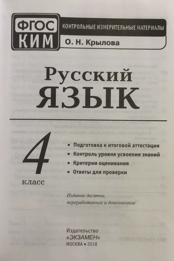 Русский язык. 4 класс. Контрольные измерительные материалы. ФГОС
