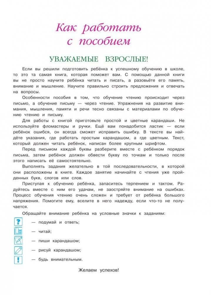 Цель данного пособия - научить ребёнка читать по слогам, писать печатными буквами слова и предложения. При этом ребёнок учится различать гласные и согласные звуки и буквы, твёрдые и мягкие, звонкие и глухие согласные; определять ударную гласную и количество слогов в слове. Задания носят разнообразный характер и способствуют развитию внимания, мышления, памяти. В пособии широко используются стихи, загадки, скороговорки, что обогащает словарный запас ребёнка, развивает его речевые навыки. Предназначено воспитателям дошкольных образовательных учреждений, гувернёрам и родителям для занятий с детьми как в детском саду, так и в домашних условиях.