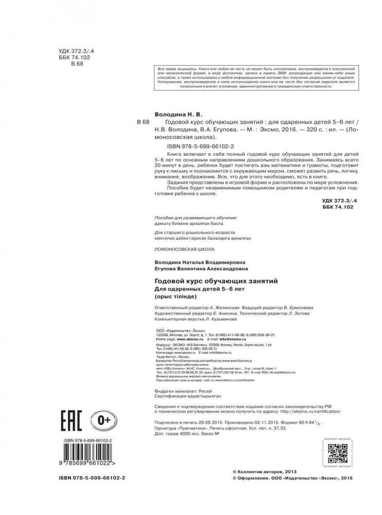 Книга включает в себя полный годовой курс обучающих занятий для детей 5-6 лет по основным направлениям дошкольного образования. Занимаясь всего 20 минут в день, ребенок будет постигать азы математики и грамоты, подготовит руку к письму, познакомится с окружающим миром, сможет развить речь, логику, внимание, воображение. Все, что для этого необходимо есть в книге. Задания представлены в игровой форме и расположены по мере усложнения. Пособие будет незаменимым помощником родителям и педагогам при подготовке ребенка к школе.