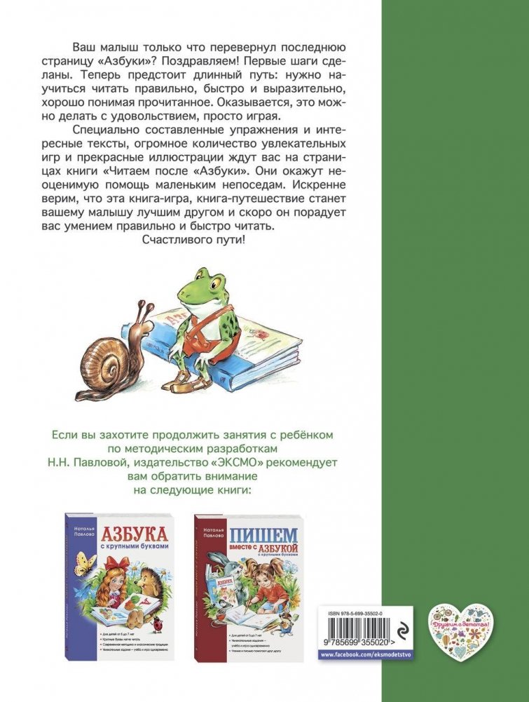 Ваш малыш только что перевернул последнюю страницу «Азбуки»? Поздравляем! Первые шаги сделаны. Теперь предстоит длинный путь: нужно научиться читать правильно, быстро и выразительно, хорошо понимая прочитанное. Оказывается, это можно делать с удовольствием, просто играя. Специально составленные упражнения и интересные тексты, огромное количество увлекательных игр и прекрасные иллюстрации ждут вас на страницах книги «Читаем после «Азбуки». Они окажут неоценимую помощь маленьким непоседам. Искренне верим, что эта книга-игра, книга-путешествие станет вашему малышу лучшим другом и скоро он порадует вас умением правильно и быстро читать. Счастливого пути!