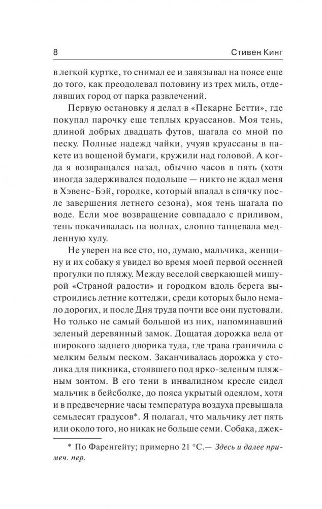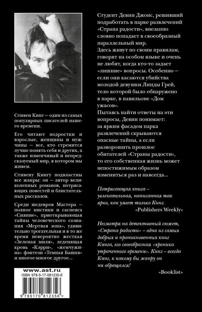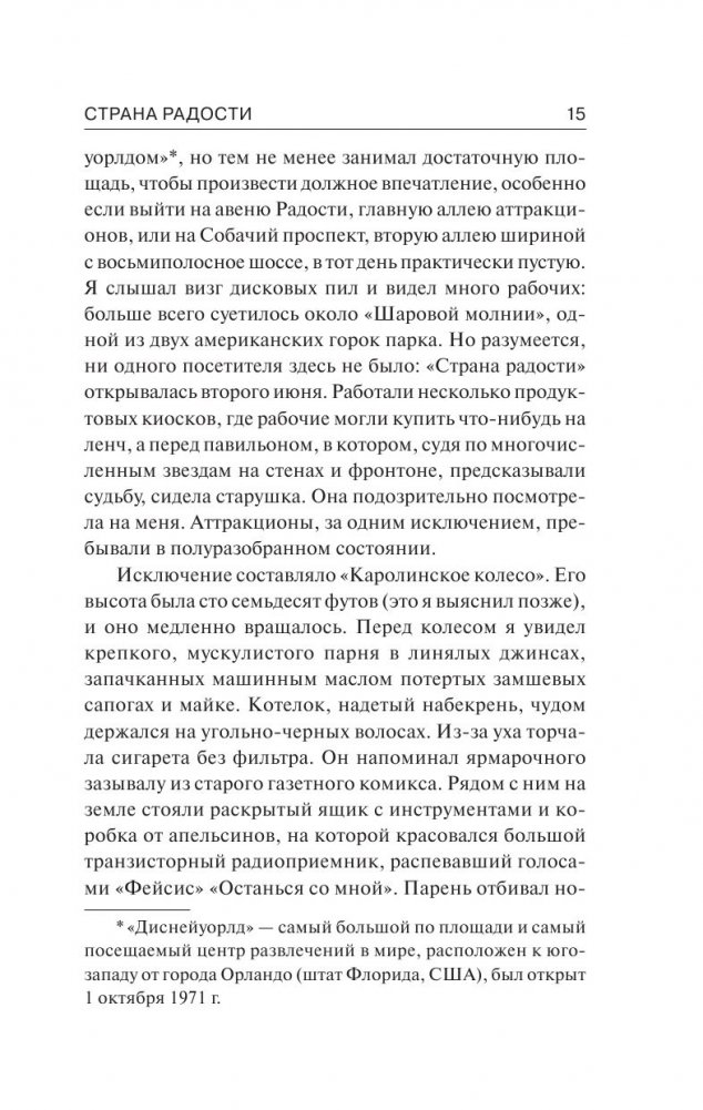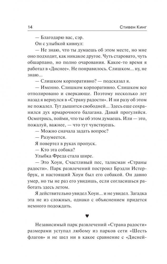 Студент Девин Джонс, решивший подработать в парке развлечений «Страна радости», внезапно словно попадает в своеобразный параллельный мир. Здесь живут по своим правилам, говорят на особом языке и очень не любят, когда кто-то задает «лишние» вопросы. Особенно – если они касаются убийства молодой девушки Линды Грей, тело которой было обнаружено в парке, в павильоне «Дом ужасов». Пытаясь найти ответы на эти вопросы, Девин понимает: за ярким фасадом парка развлечений скрываются опасные тайны, а если разворошить прошлое обитателей «Страны радости», то его собственная жизнь может непостижимым образом измениться раз и навсегда…
