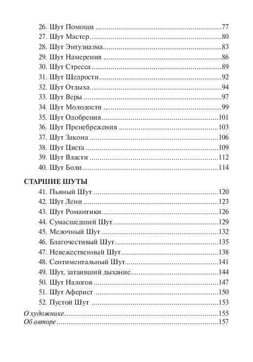 Этот набор из 52 карт создан для того, чтобы помочь вашему духовному росту и привести вас к внутренней свободе. За метафорой Шута скрывается всегда объективный Божественный голос, живущий в каждом из нас. Он наблюдает за нашей жизнью, четко и недвусмысленно указывая на наши ошибки и недочеты. В любой ситуации Шут правдив и прямолинеен. Подобно зеркалу, он показывает действительность без прикрас. Прибегайте к мудрости Шута ежедневно, и вы прольете свет на все скрытые препятствия, которые мешают вам жить полноценной жизнью и развиваться.