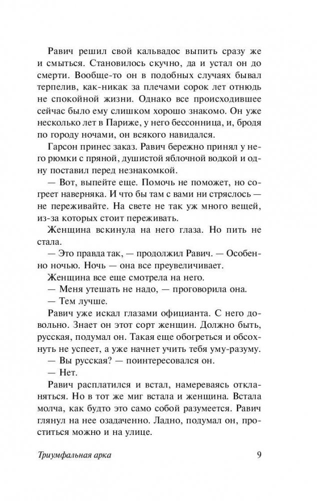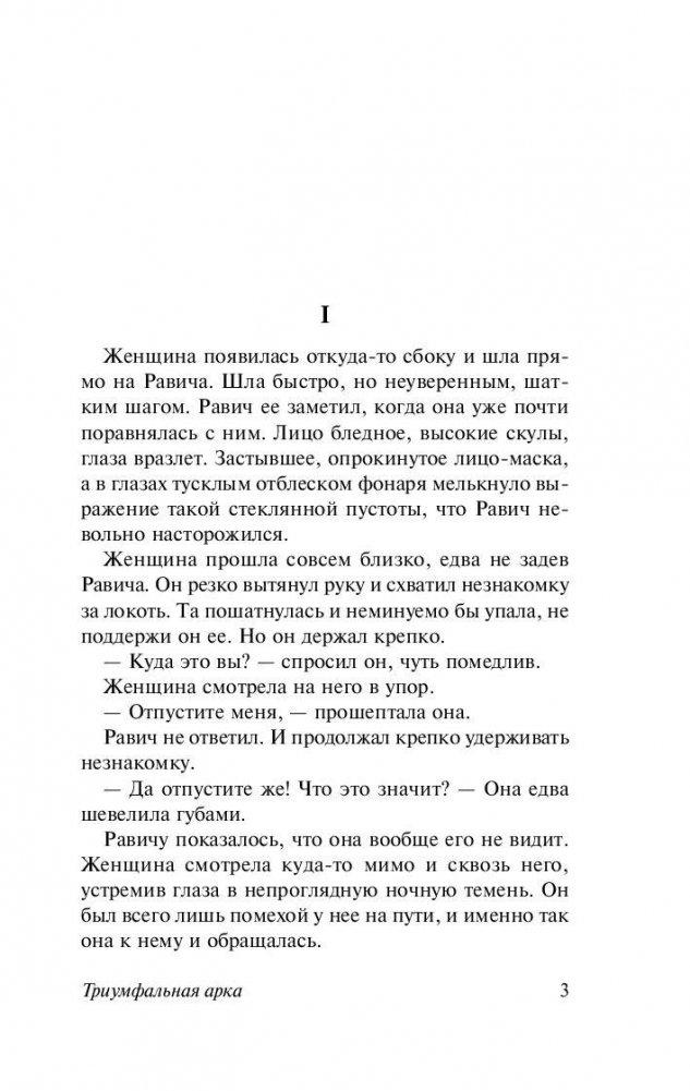Роман Эриха Марии Ремарка "Триумфальная арка", впервые изданный 1945 году в США, пользовался большим успехом и стал бестселлером в короткие сроки. На сегодняшний день это один из самых востребованных и читаемых романов. Действие романа происходит в Париже в 1939 году. Это история хирурга, беженца из Германии , который скрывается и от нацистов, и от французов, и итальянской актрисы, своеобразной, вспыльчивой и неотразимой, которую окружают поклонники. Прототипом главной героини является Марлен Дитрих, с которой Ремарк жил в Париже перед началом Второй мировой войны и любовь к которой пронес через многие годы. Это роман о войне и смерти, и о любви наперекор всему. Он является одним из самых известных произведений Ремарка и считается одним из самых красивых и печальных, сильных и впечатляющих романов XX века. Роман был экранизирован дважды, обе экранизации с участием звезд мирового кинематографа - Ингрид Бергман и Шарля Буайе в первой, Энтони Хопкинса во второй, имели огромный успех и вошли в золотой фонд мирового кинематографа.