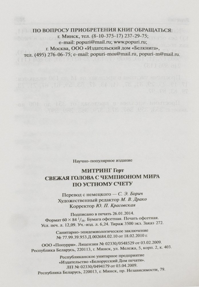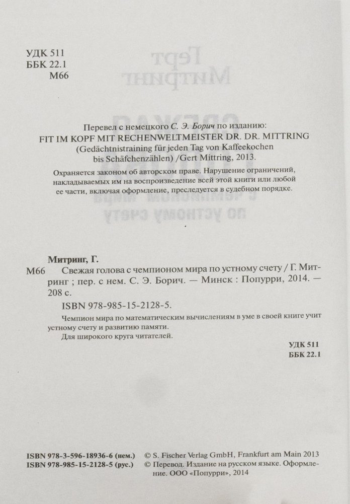 Чемпион мира по математическим вычислениям в уме в своей книге учит устному счету и развитию памяти. Для широкого круга читателей.