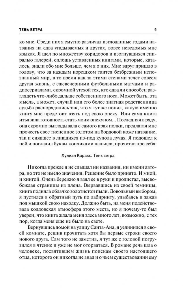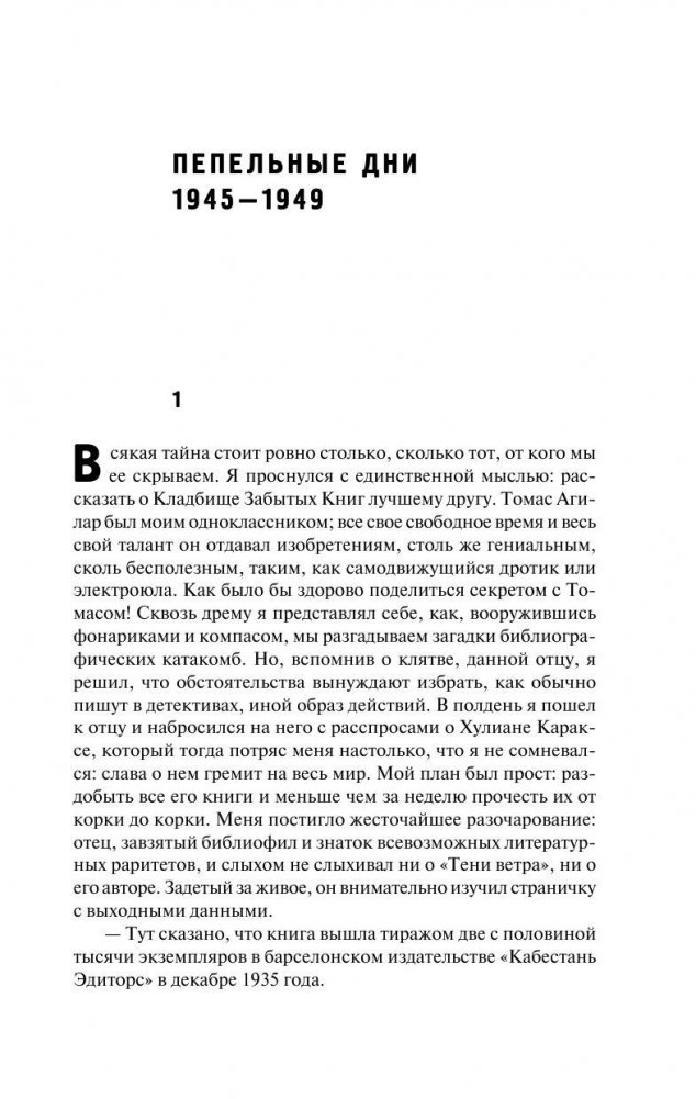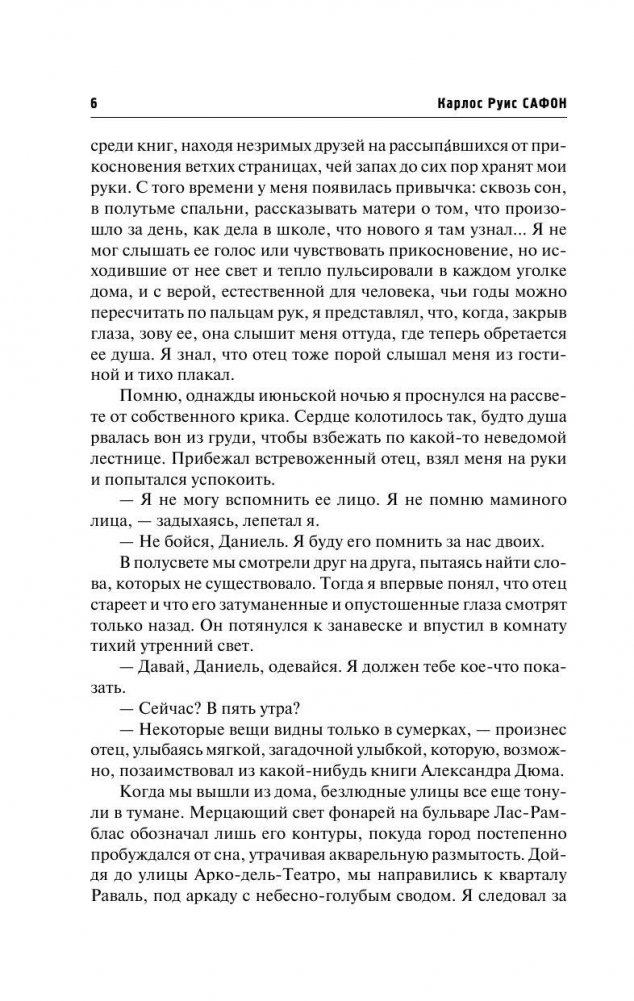 Книга-явление. Книга-головоломка. Книга-лабиринт. Роман, который заставляет читателя погрузиться в почти мистический мир Барселоны и перемещает его в совершенно иную систему координат. Читателю предстоит вместе с главным героем встретить зловещих незнакомцев, понять и полюбить прекрасных и загадочных женщин, бродить по мрачным лабиринтам прошлого, и главное — раскрыть тайну книги, которая непостижимым образом изменяет жизнь тех, кто к ней прикасается. Удивительная книга, в которой есть все: увлекательный сюжет, блестящий стиль и будоражащие воображение тайны.