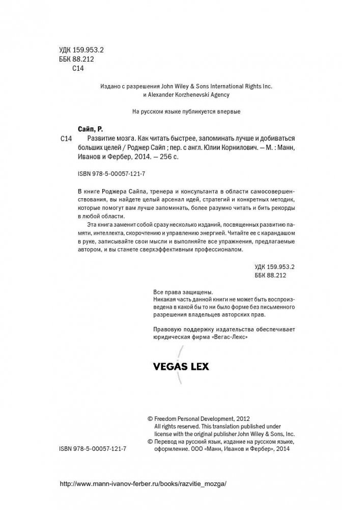 Развитие мозга. Как читать быстрее, запоминать лучше и добиваться больших целей