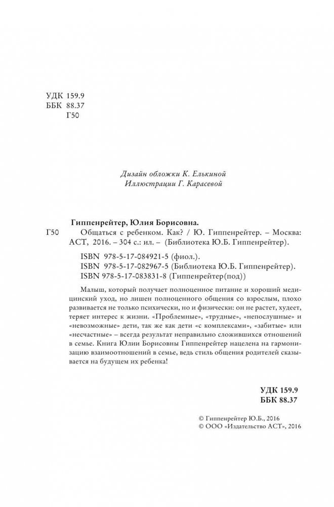 Юлия Борисовна Гиппенрейтер – известный ученый и талантливый педагог, автор многочисленных статей, монографий, учебных пособий. В книге «Общаться с ребёнком. Как?» нашли отражение не только высокий профессионализм автора, но и её богатый личный опыт.