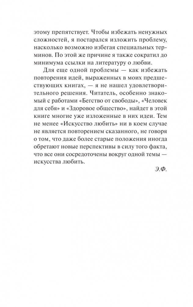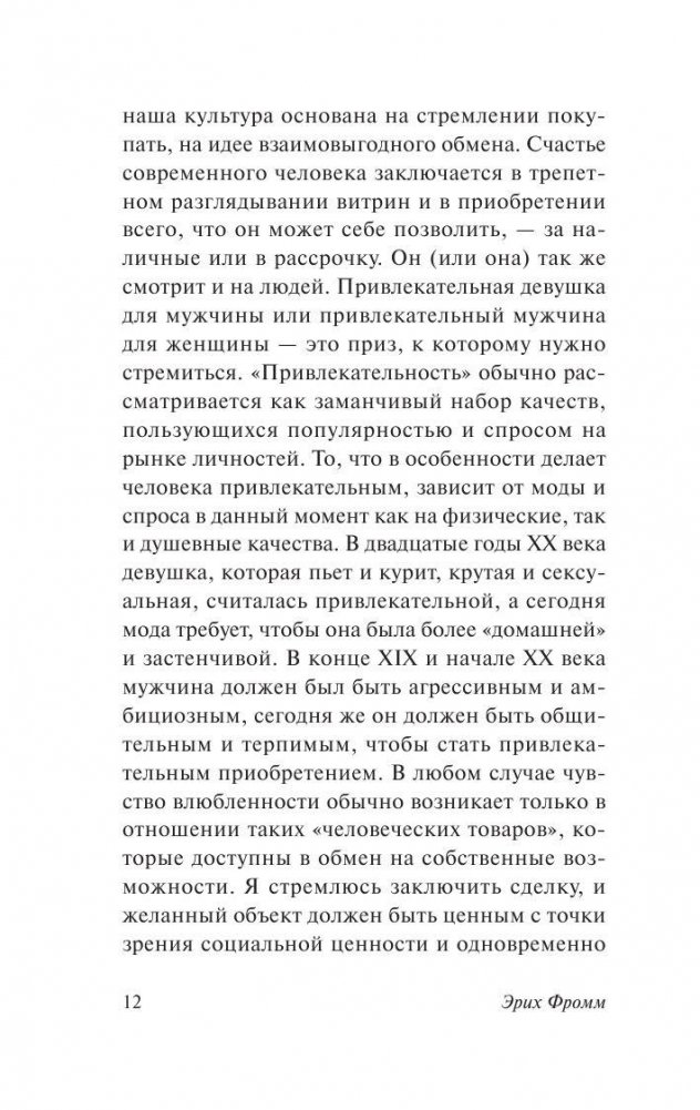 Одна из самых известных работ Эриха Фромма — «Искусство любить» — посвящена непростым психологическим аспектам возникновения и сохранения человеком такого, казалось бы, простого чувства, как любовь. Действительно ли любовь — искусство? Если да, то она требует труда и знаний. Или это только приятное ощущение?.. Для большинства проблема любви — это прежде всего проблема того, как быть любимым, а не того, как любить самому…