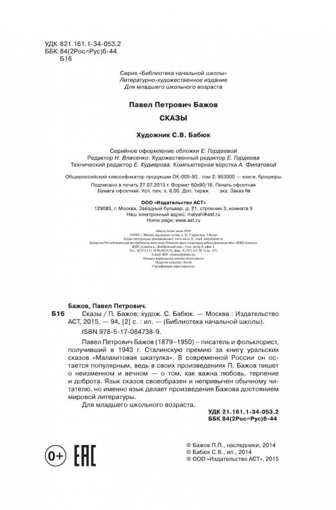 Горы Уральские — старые-старые… В их недрах таится множество сокровищ. Но сокровища эти достанутся лишь тому, кто упорно добивается своей цели, не отступает перед трудностями и по-настоящему умеет дружить. Этому и учат сказы знаменитого писателя П. Бажова, вошедшие в новую книгу из серии «Библиотека начальной школы».