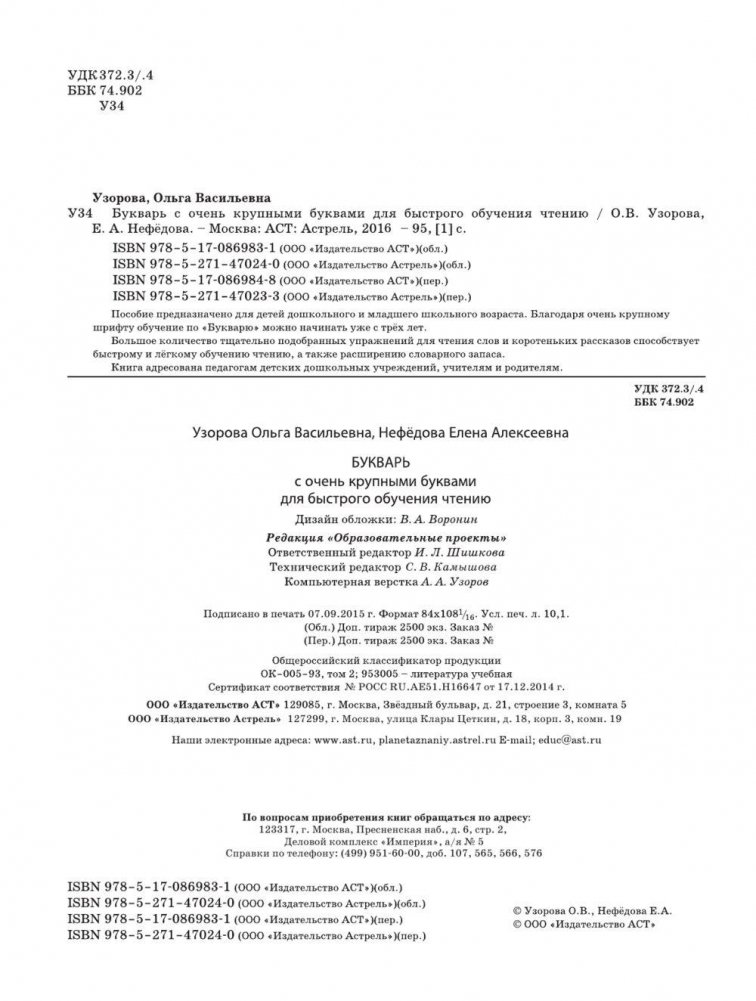 Букварь с очень крупными буквами для быстрого обучения чтению