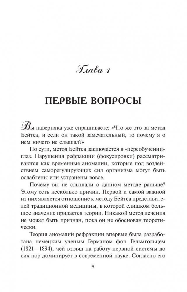 Вы носите очки? Но вполне возможно, что в этом нет никакой необходимости! Мало того, от очков и контактных линз зрение чаще всего ухудшается, и вам будут необходимы всё более сильные линзы. С помощью метода Бейтса, представленного в этой книге, 75 процентов людей смогли добиться существенного улучшения зрения, а многие из них — навсегда отказаться от очков!