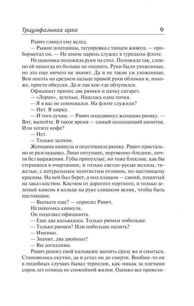 Роман Эриха Марии Ремарка "Триумфальная арка", впервые изданный 1945 году в США, пользовался большим успехом и стал бестселлером в короткие сроки. На сегодняшний день это один из самых востребованных и читаемых романов. Действие романа происходит в Париже в 1939 году. Это история хирурга, беженца из Германии , который скрывается и от нацистов, и от французов, и итальянской актрисы, своеобразной, вспыльчивой и неотразимой, которую окружают поклонники. Прототипом главной героини является Марлен Дитрих, с которой Ремарк жил в Париже перед началом Второй мировой войны и любовь к которой пронес через многие годы. Это роман о войне и смерти, и о любви наперекор всему. Он является одним из самых известных произведений Ремарка и считается одним из самых красивых и печальных, сильных и впечатляющих романов XX века. Роман был экранизирован дважды, обе экранизации с участием звезд мирового кинематографа - Ингрид Бергман и Шарля Буайе в первой, Энтони Хопкинса во второй, имели огромный успех и вошли в золотой фонд мирового кинематографа.