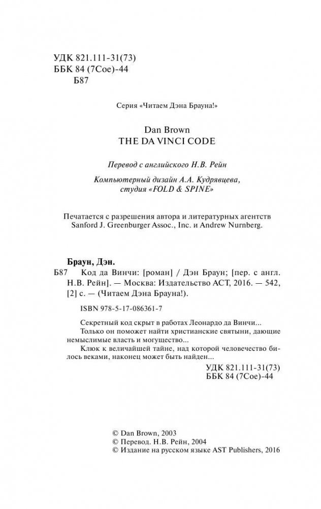 Секретный код скрыт в работах Леонардо да Винчи... Только он поможет найти христианские святыни, дающие немыслимые власть и могущество... Клюк к величайшей тайне, над которой человечество билось веками, наконец может быть найден...