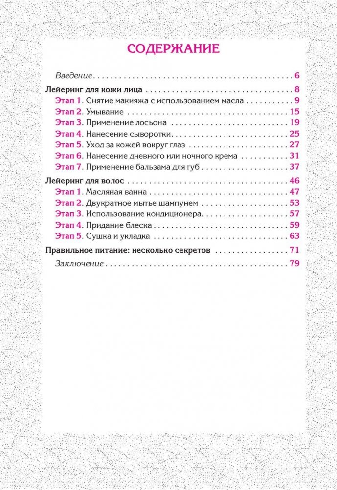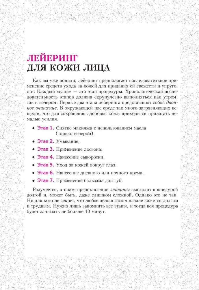 Чтобы иметь гладкую безупречную кожу и мягкие блестящие волосы, японки разработали тщательный пошаговый ритуал, получивший название «лейеринг», что буквально означает «наложение слоев». Автор книги подробно рассказывает о каждом этапе этого эффективного японского ритуала и о тех натуральных косметических средствах, которыми любят пользоваться японки. Для широкого круга читателей.
