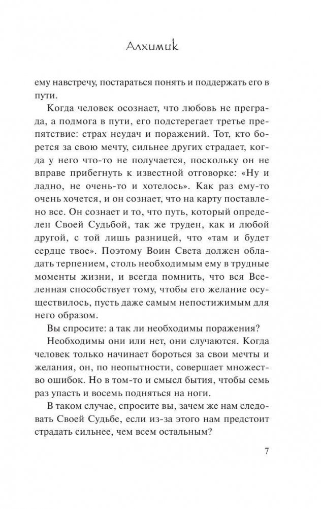 "Алхимик" — самый известный роман бразильского писателя Пауло Коэльо, любимая книга миллионов людей во всем мире. В юности люди не боятся мечтать, все кажется им возможным. Но проходит время, и таинственная сила принимается им внушать, что их желания неосуществимы. "Добиться воплощения Своей Судьбы — вот единственная подлинная обязанность человека..." — утверждает Пауло Коэльо. Этот, ставший культовым, роман-притча способен изменить жизнь своих читателей.