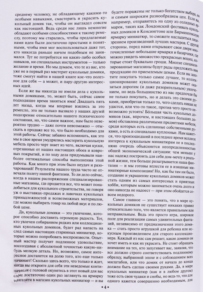 Перед вами одно из самых замечательных пособий — с точки зрения как легкости чтения, так и отсутствия в нем всяких специфических премудростей и непонятных терминов. Любой, кто любит заниматься рукоделием, найдет здесь много бесценных идей и узнает: как смастерить каркас и осуществить сборку кукольного домика, как сделать миниатюрную мебель и разнообразные аксессуары, как декорировать домик и провести в него свет, как разбить садик возле кукольного домика, как починить или обновить домик. Все инструкции сопровождаются великолепными цветными фото и точными планами в масштабе 1:12 и 1:16.