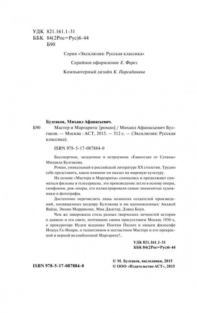Бессмертное, загадочное и остроумное «Евангелие от Сатаны» Михаила Булгакова. Роман, уникальный в российской литературе ХХ столетия. Трудно себе представить, какое влияние он оказал на мировую культуру. На основе «Мастера и Маргариты» снимались и продолжают сниматься фильмы и телесериалы, это произведение легло в основу оперы, симфонии, рок-оперы, его иллюстрировали самые знаменитые художники и фотографы. Достаточно перечислить лишь немногих создателей произведений, посвященных шедевру Булгакова и им вдохновленных: Анджей Вайда, Эннио Морриконе, Мик Джаггер, Дэвид Боуи. Чем же заворожила столь разных творческих личностей история о дьяволе и его свите, почтивших своим присутствием Москву 1930-х, о прокураторе Иудеи всаднике Понтии Пилате и нищем философе Иешуа Га-Ноцри, о талантливом и несчастном Мастере и его прекрасной и верной возлюбленной Маргарите?