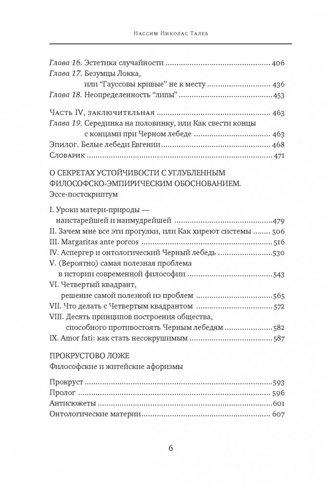 За одно только последнее десятилетие человечество пережило ряд тяжелейших катастроф, потрясений и катаклизмов, не укладывающихся в рамки самых фантастических предсказаний. Пятидесятидвухлетний ливанец, выпускник Сорбонны и нью-йоркский финансовый гуру Нассим Талеб называет такие непрогнозируемые события Черными лебедями. Он убежден: именно они дают толчок как истории в целом, так и существованию каждого отдельного человека. И чтобы преуспеть, надо быть к ним готовыми. Сразу после выхода "Черного лебедя" автор блестяще продемонстрировал свою "не-теорию" на практике: на фоне финансового кризиса компания Талеба заработала (а не потеряла!) для инвесторов полмиллиарда долларов. Но его труд — не учебник по экономике. Это размышления очень незаурядного человека о жизни и о том, как найти в ней свое место. В написанном им позже эссе-постскриптуме "О секретах устойчивости" Талеб дает остроумный отпор тем экономистам-ортодоксам, которые приняли созданное им антиучение в штыки. Вошедшее в книгу собрание афоризмов Нассима Талеба — это блестящая квинтэссенция его оригинальных идей.