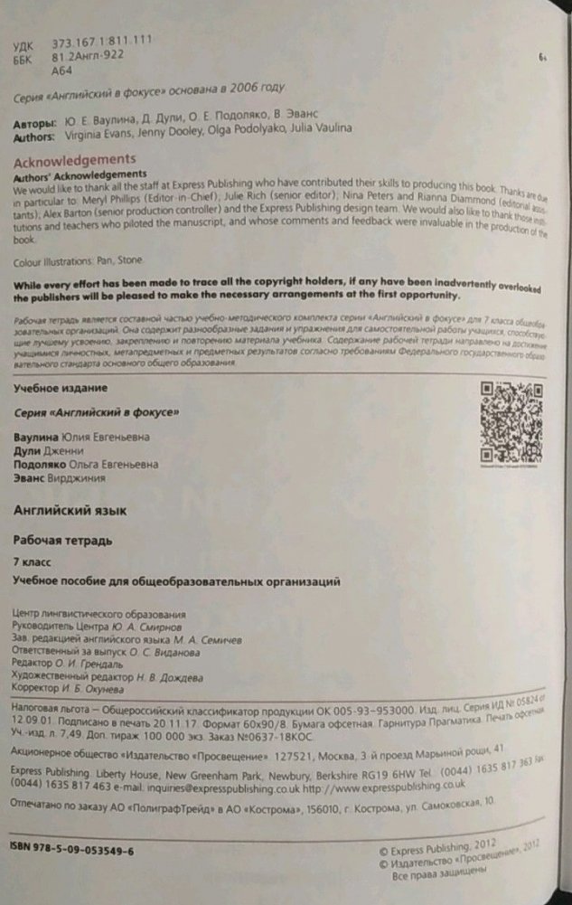 Английский язык. Английский в фокусе. Spotlight. 7 класс. Рабочая тетрадь. С online приложением