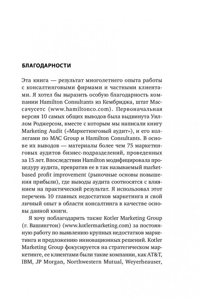 Задача маркетинга — управлять бизнес-стратегией компании: выявлять возможности, разрабатывать и реализовывать планы, которые принесут успех на рынке. Гуру маркетинга Филип Котлер проанализировал десять типичных ошибок, которые допускают маркетологи, и дал советы, как их избежать и обеспечить успешное развитие компании. Книга адресована менеджерам и владельцам компаний, специалистам в сфере маркетинга, студентам вузов, а также тем, кто планирует открыть свой бизнес.
