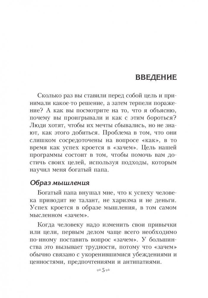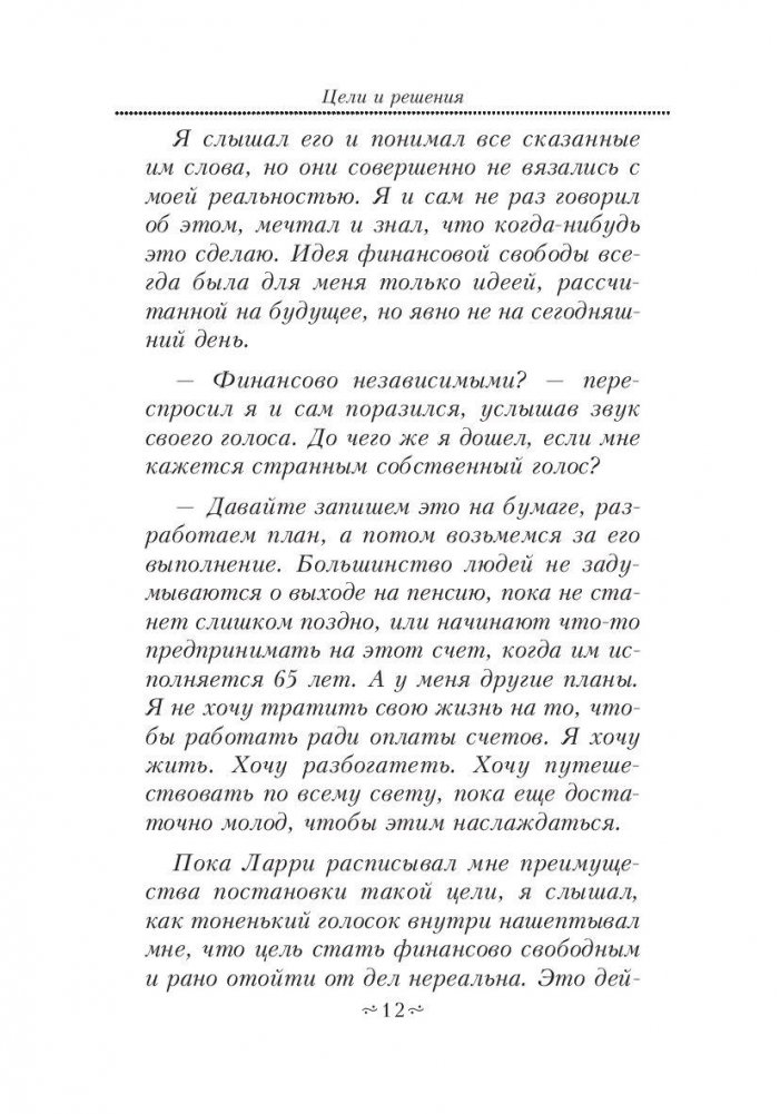 Сколько раз ставили перед собой цели и принимали какие-то решения, а затем терпели поражения? Как часто ваши мечты так и оставались мечтами? Эта книга написана именно для того, чтобы объяснить вам, почему вы проигрывали и как избежать подобных ошибок в будущем. Цель программы Роберта Кийосаки — научить вас всегда достигать целей с помощью принципов, которым учил его богатый папа. Она содержит практические материалы, советы, примеры, вопросы, упражнения, благодаря которым благие намерения превращаются в четкие, достижимые цели. Роберт гарантирует: в конце вашего пути наградой станет не только финансовая свобода, но и безграничная уверенность в себе.