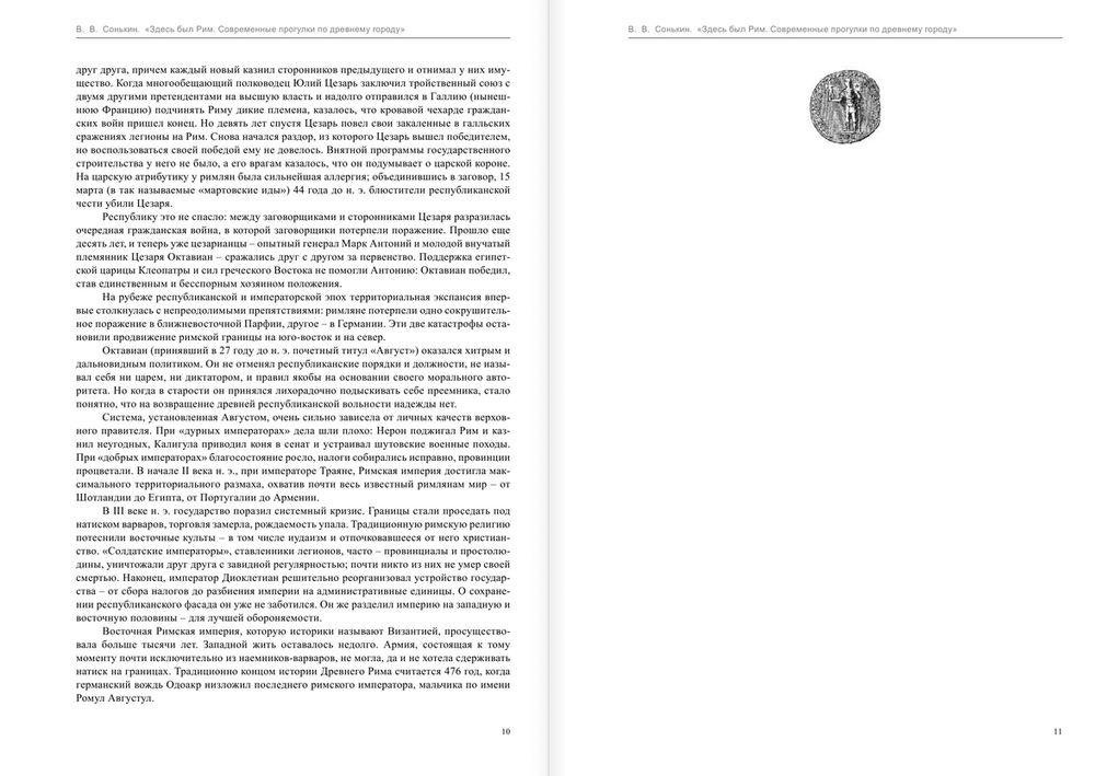 Виктор Сонькин - филолог, специалист по западноевропейским и славянским литературам, журналист, переводчик-синхронист и преподаватель, один из руководителей семинара Борисенко-Сонькина (МГУ), участники которого подготовили антологии детективной новеллы "Не только Холмс" и "Только не дворецкий". Эта книга возникла на стыке двух главных увлечений автора - античности и путешествий. Ее можно читать как путеводитель, а можно - как рассказ об одном из главных мест на земле. Автор стремился следовать по стопам просвещенных дилетантов, влюбленных в Вечный город, - Гёте, Байрона, Гоголя, Диккенса, Марка Твена, Павла Муратова, Петра Вайля. Столица всевластных пап, жемчужина Ренессанса и барокко, город Микеланджело и Бернини будет просвечивать почти сквозь каждую страницу, но основное содержание книги "Здесь был Рим" - это рассказ о древних временах, о городе Ромула, Цезаря и Нерона.