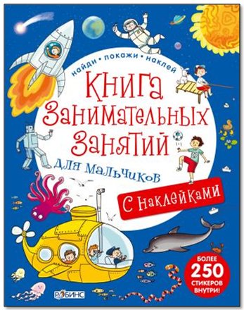 Серия "Найди, покажи, наклей" - обучающие книги для детей от 3-х лет с вкладышами-наклейками внутри. Особенность книги: Разностороннее развитие ребенка очень важно. Поэтому "Книга занимательных занятий для мальчиков" поможет вашему малышу играючи научится искать, считать, замечать и познавать. Посетите пиратский корабль, спортивную арену, зоопарк, космос, гонки, лабиринт и многие другие развлечения для юных искателей приключений! А веселые наклейки помогут занять ребенка и практически. Что найдем внутри: 26 страниц, которые отправят ребенка в прекрасное путешествие с интересными загадками и головоломками, красочными иллюстрациями на разную тематику. Яркие наклейки в приложении к книге помогут весело и с пользой провести время. Важно знать родителям: - Для детей от 3-х лет - более 250 стикеров внутри - занимательные задачки - развивает память, внимание, воображение.