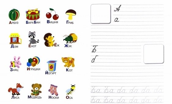 Учимся писать буквы. Прописи с наклейками