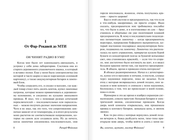 Он был известен своим пристрастием к шуткам и розыгрышам, писал изумительные портреты, играл на экзотических музыкальных инструментах. Великолепный оратор, он превращал каждую свою лекцию в захватывающую интеллектуальную игру. На его выступления рвались не только студенты и коллеги, но и люди, просто увлеченные физикой. Автобиография великого ученого захватывает сильнее, чем приключенческий роман. Это одна из немногих книг, которые навсегда остаются в памяти каждого, кто их прочитал.