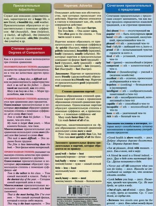 Перед вами справочный материал по английскому языку для детей и их родителей. Материал удобно расположен, в цветных таблицах, с двух сторон на ламинированном листе А4.