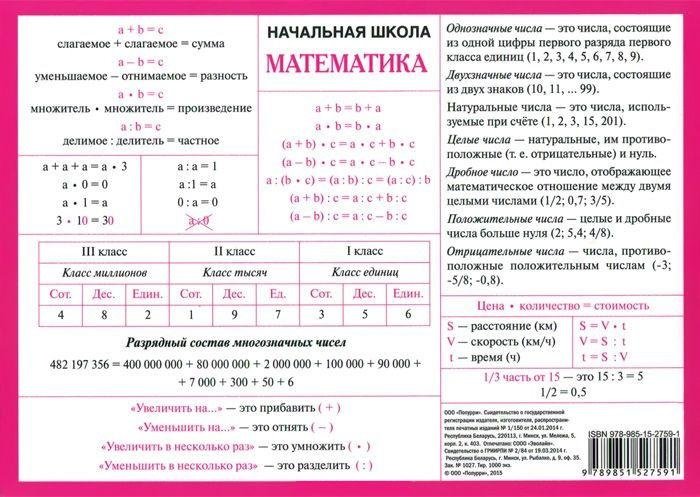 Эта серия учебных материалов представляет собой двухсторонние ламинированные карточки формата А4, А5 и А6, на которых в виде понятных таблиц приводятся компактно систематизированные сведения по предметам, что способствует их оптимальному усвоению и запоминанию. Ребенок сможет в любой момент освежить в памяти нужный материал, а благодаря ламинированию таблички будет удобно всегда носить с собой (даже просто в рюкзаке) и это никак не отразится на их качестве — они не испортятся и не помнутся.