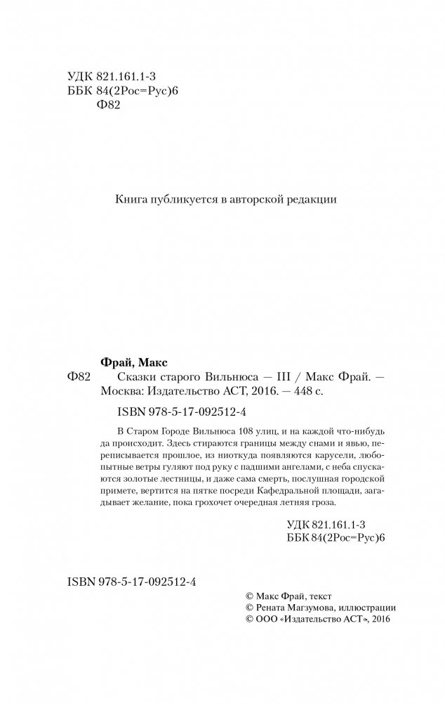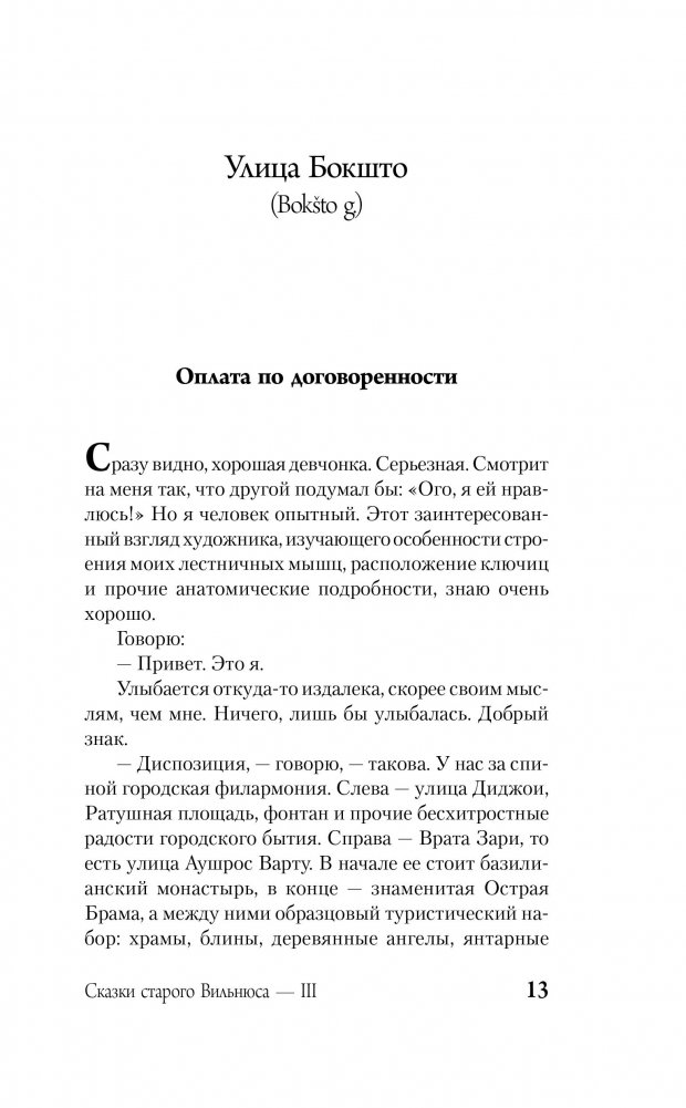 В Старом Городе Вильнюса 108 улиц, и на каждой что-нибудь да происходит. Здесь стираются границы между снами и явью, переписывается прошлое, из ниоткуда появляются карусели, любопытные ветры гуляют под руку с падшими ангелами, с неба спускаются золотые лестницы, и даже сама смерть, послушная городской примете, вертится на пятке посреди Кафедральной площади, загадывает желание, пока грохочет очередная летняя гроза.
