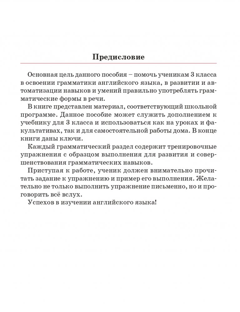 Эта тетрадь поможет ученикам 3 класса в освоении грамматики английского языка, в развитии и автоматизации языковых навыков и умения правильно употреблять грамматические формы в устной речи. В пособии представлен материал, соответствующий школьной программе. Оно может служить дополнением к учебнику и использоваться как на уроках и факультативах, так и для самостоятельной работы дома.